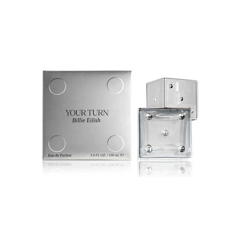 Billie Eilish Your Turn Eau de Parfum 100 ml é uma fragrância unissex lançada em 2025 que celebra a individualidade e o estilo pessoal. Desenvolvida por Billie Eilish em parceria com a casa perfumista Firmenich/Parlux Ltd., combina acordes frescos e especiados com uma base amadeirada e almíscarada, resultando num aroma contemporâneo e versátil