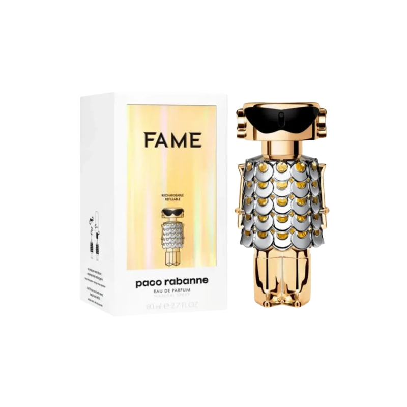 Fame de Paco Rabanne é uma fragrância feminina que personifica o espírito irresistível e a sensualidade da mulher parisiense moderna. Classificado como Floral Amadeirado Almiscarado, este perfume é ousado e alegre, destacando-se pela união inesperada do Mango tropical com o Incenso cremoso e o Jasmim puro, resultando em uma aura viciante e sofisticada. O frasco de 8 ml é perfeito para ser transportado.