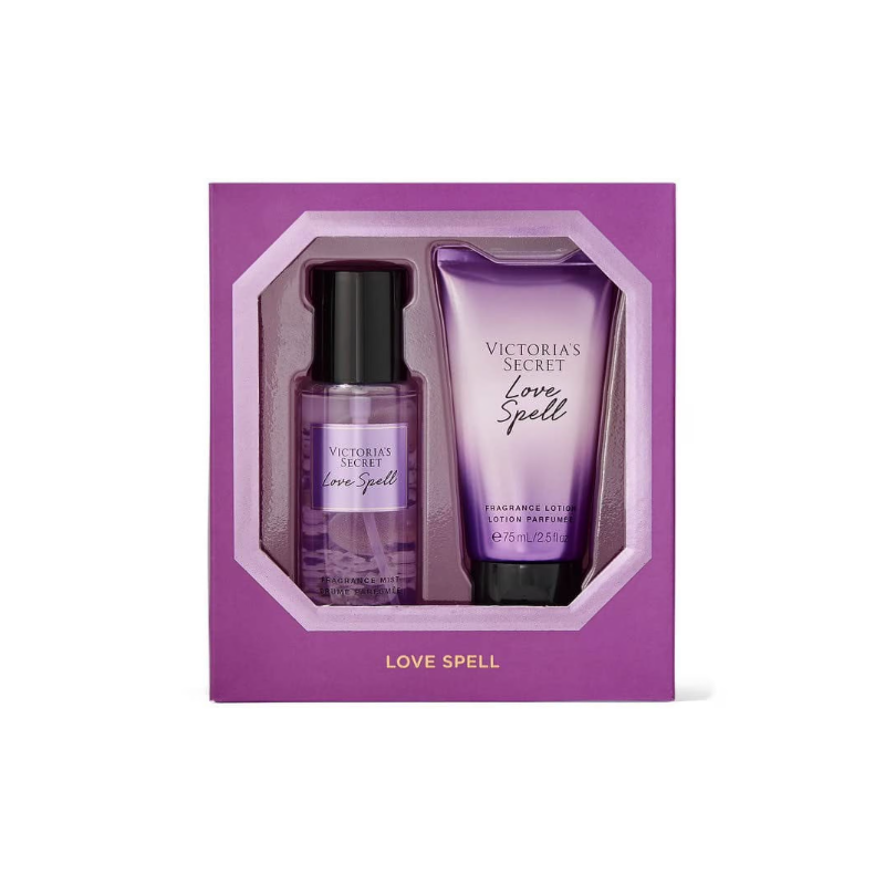 O Conjunto Victoria's Secret Love Spell, com Loção Corporal 75ml e Body Mist 75ml, é uma combinação irresistível que envolve a pele e os sentidos com uma fragrância delicada e encantadora. Perfeito para quem deseja uma sensação de frescor, romance e suavidade durante todo o dia.