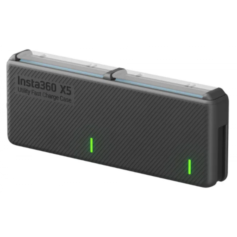 O carregador de bateria para INSTA360 X5 CINSBAHM permite carregar várias baterias simultaneamente via USB-C, conta com indicadores LED para o status de carga, pode funcionar como power bank para outros dispositivos e é ideal para viagens, gravações prolongadas e uso profissional em campo.