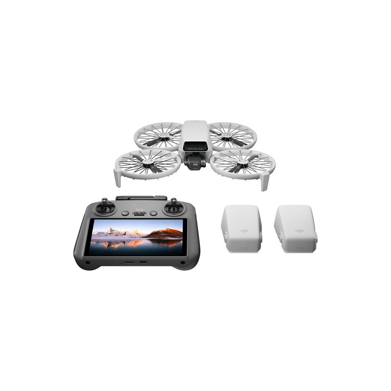 Inclui: Drone, controle DJI RC 2, 3 baterias, hélices extras, cabo USB-C, estação de carregamento, estojo e manual