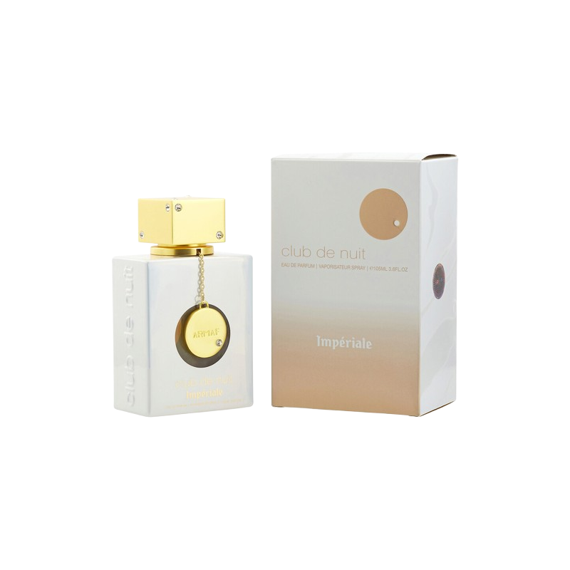 CLUB DE NUIT WHITE IMPERIALE F é um Eau de Parfum Feminino Floral Frutado Amadeirado que pertence à linha Club de Nuit e se inspira em Delina Exclusif. É um perfume doce, cremoso e opulento, construído em torno da majestade da Rosa Turca e da Lichia, envolvidas pela cremosidade da Baunilha e da Fava Tonka. Ideal para uso noturno ou em eventos especiais, em climas frios e para quem busca uma fragrância luxuosa, feminina e intensamente sedutora com altíssima fixação.